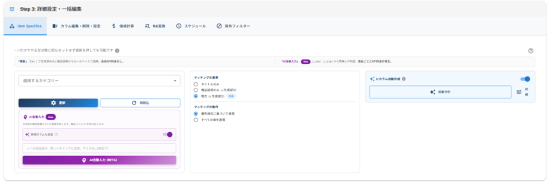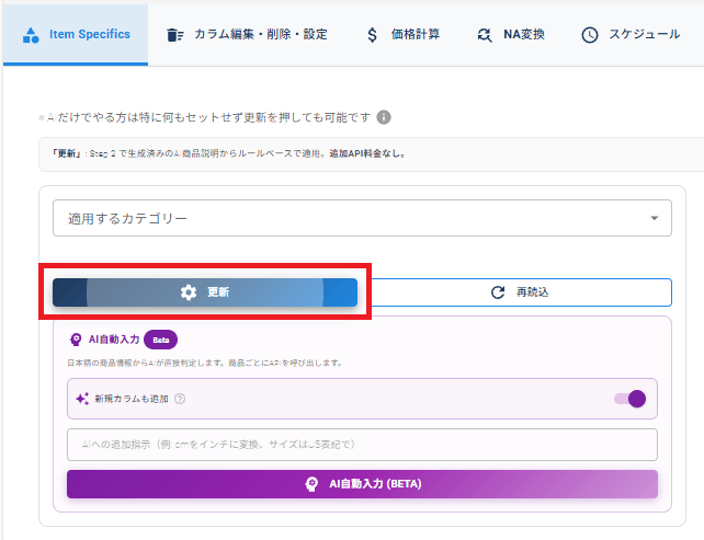 AIタイトル生成、AI商品説明生成後にItem Specificsを適用することを推奨します。