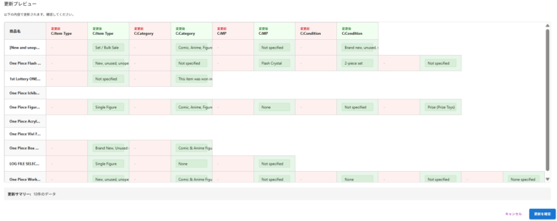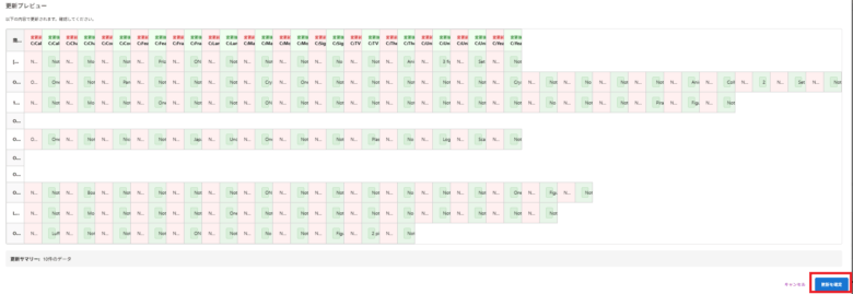「データを更新」をクリックすると、更新プレビューが表示されます。