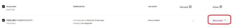 Send coupon to a buyer groupでは、オリジナルのバイヤーグループへクーポンを送れます。