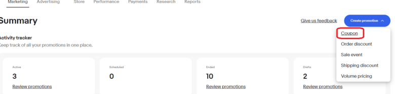 eBayのマーケティングツールを活用してクーポンを作成し、バイヤーに対して割引セールを行えます。