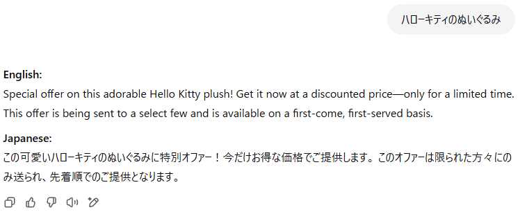 ※メッセージは230文字の文字数制限があるので、範囲内での英文と翻訳が作成されます