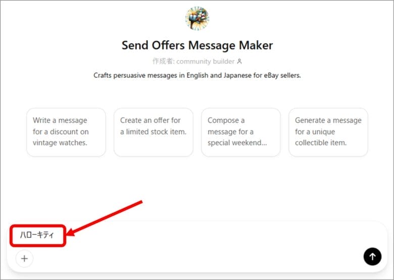Chat GPT4の「Send Offers Message Maker」を使うと、各商品に最適な購買意欲が高められる文章を作れます。