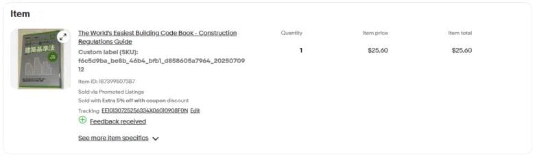 この時は「やってしまった」と焦ってしまい、再度出品ページを作成し、不足分を0.1ドルで販売する形をとりました。
