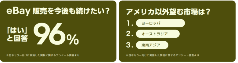 - 「eBay販売を今後も続けたい?」 → 多くのセラーが「はい」と回答