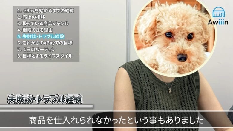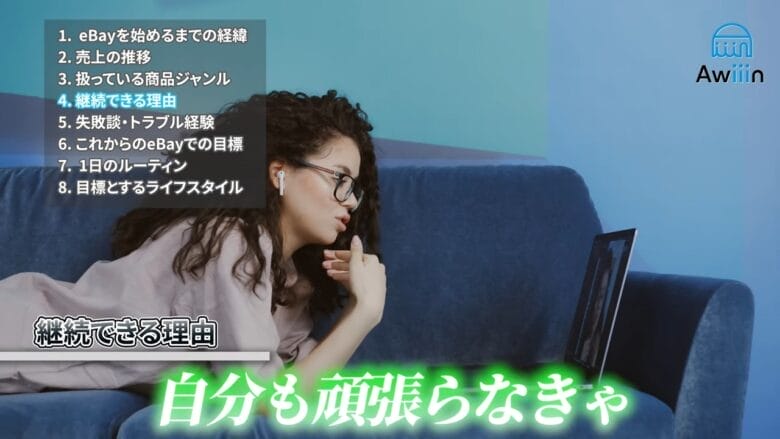 副業→物販→eBayで検索していたところ、Awiiinの動画をたまたま拝見し、地方在住でも物販って出来るんだと知りました。