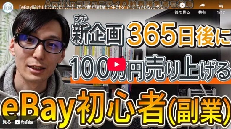 - 2018年:YouTubeチャンネル「eBayから始めよう by Awiiin」開設