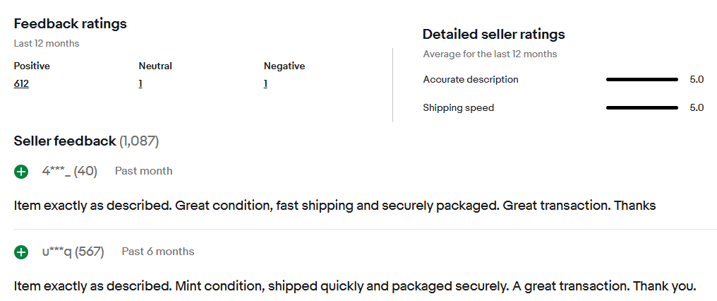 それと同じでebayにも、口コミと同じようなフィードバック機能があり、過去の取引実績や評価を確認することで、信頼できるセラーを選びやすくなります。