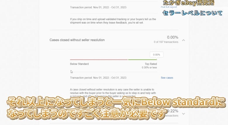一番重要な基準はCases closed without seller resolutionですのでしっかり注意を払いましょう。