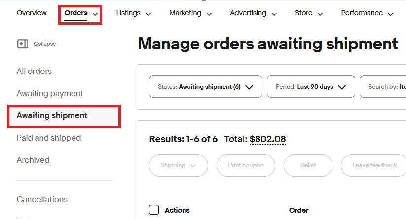 基本的に、Orders > Awaiting shipment に入っているオーダーは、支払いが完了していてこれから発送する必要がある注文です。