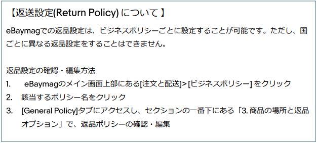 リターンポリシー設定について