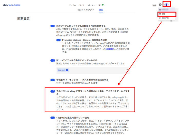 - eBaymag内で行った変更は、オリジナルサイト(USサイト)に反映されない