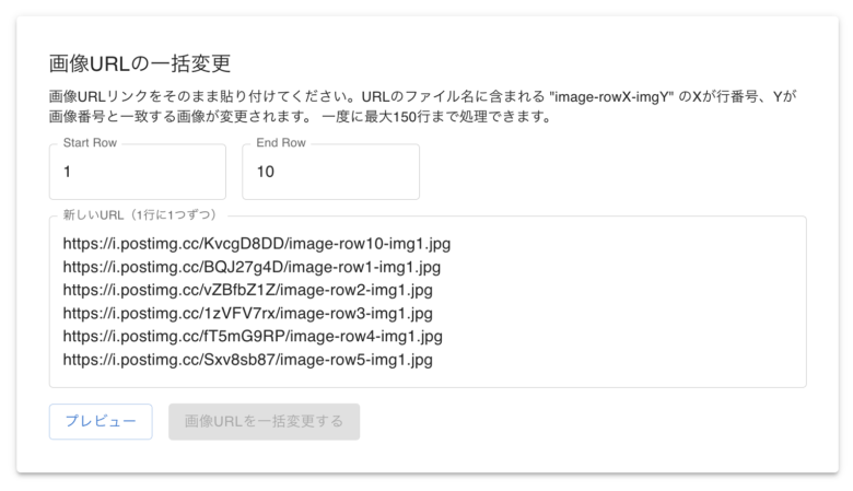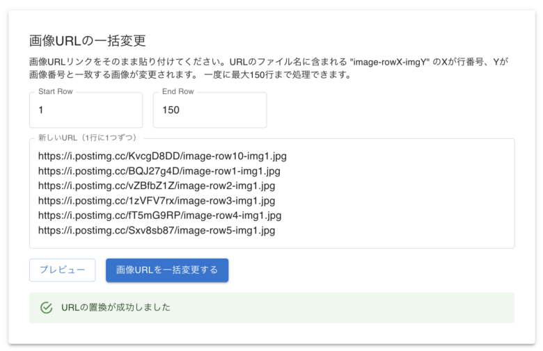 プレビューで画像が変わったかどうか確認できたら、右下の「画像URLを一括変更する」をクリック。