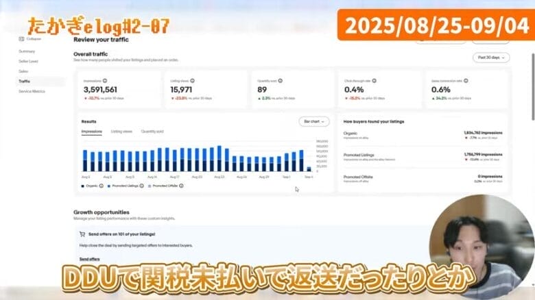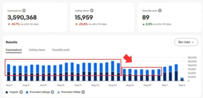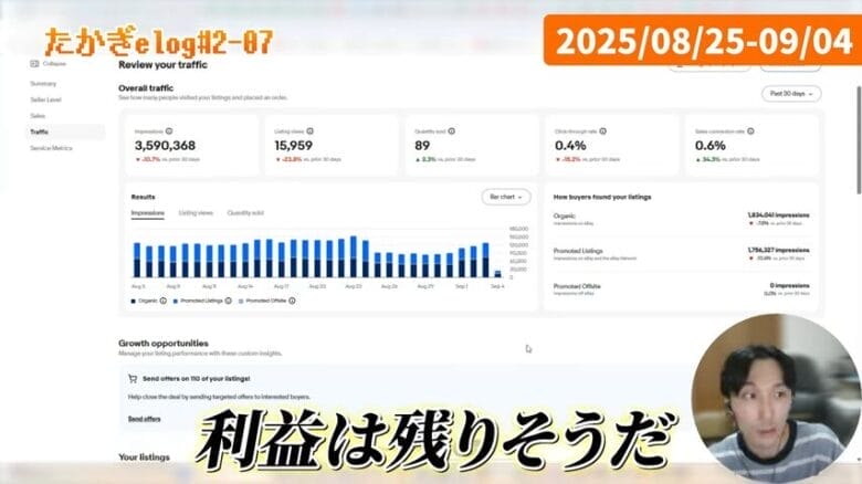 8月後半からプロモーテッドリスティングのインプレッションが大幅に落ちたのは、関税の影響なのかちょっと分からないですね。