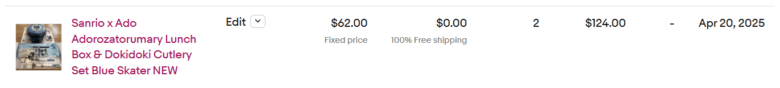 「Sanrio(サンリオ)× Ado」のコラボ商品が、30日間で2個・62ドルで売れていたことが確認できました。
